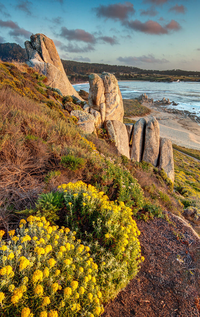 Away from the Carmel Beach crowd, Ribera has a walking path that meanders through coastal wildflowers with stunning vistas of Pebble Beach and Point Lobos.